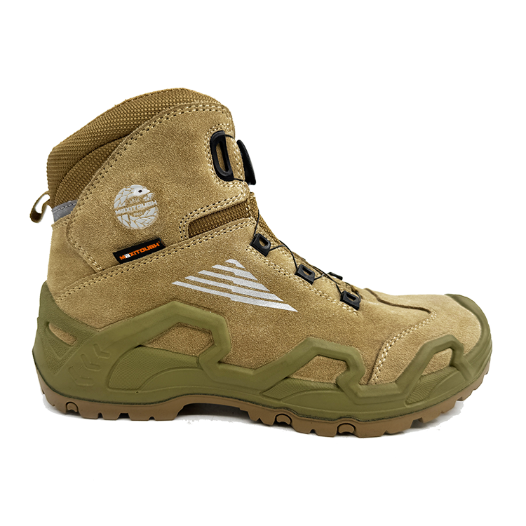 Upper: Suede Leather + Screen Printing + Rotary Buckle Toe & Midsole: Steel Toe & Steel Midsole Outsole: PU + Rubber |